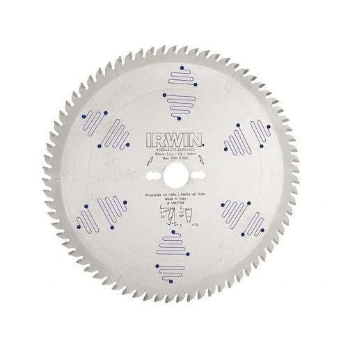 Disco De Serra Circular Para Madeira/mdf 12 300mm Modelo Freud 96 Dentes Irwin Disco de Serra Circular para Madeira/MDF 12 300mm Modelo Freud 96 Dentes Irwin - Modelo Freud 12 polegadas Furo 30mm para Madeira/MDF 1863706 Características Gerais do Produto: - Modelo: 1863706 - Marca: Irwin - Dimensões: 300mm - Características: - Ranhuras de expansão cortadas a laser reduzem vibrações e ruído.; - Dentes de metal duro re-afiáveis.; - Grandes dentes de metal duro com grãos micro-finos.; - Revestimento de Cromo proporciona maior vida útil.; - N de Dentes: 96.; - Espessura Lâmina: 2,2mm.; - Largura Corte: 3,2mm.; - RPM Máxima: 5.900.; - Diâmetro do Furo: 30mm.; - Tipo Afiação: ATB.; - Ideal Para: Cortes em Madeira e MDF - Garantia direto com o Fabricante: 3 Meses Contra Defeitos de Fabricação Garantia: - Sem Garantia