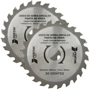 Diâmetro do disco: 180mm. Diâmetro do eixo furo : 20mm. Quantidade de dentes: 30 dentes com ponta de vídea. Material: Corpo de aço de alta resistência com pontas de vídea. Indicado para: Cortes em madeira, MDF, compensados e outros materiais similares.