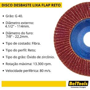 Disco Desbaste Lixa Flap Reto G40 4.1/2 Beltools