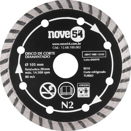 Disco Diamantado 105mm Turbo Furo 20mm N2 - Nove54