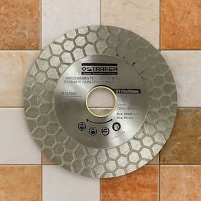 O Disco Diamantado da Starfer é ideal para cortes precisos e desbastes eficientes em materiais cerâmicos, especialmente porcelanatos. Fabricado em aço carbono com lâmina diamantada em seções hexagonais, oferece alta performance, durabilidade e versatilidade no uso.