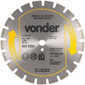 Eleve a eficiência do seu canteiro de obras com a robustez e a precisão do Disco Diamantado 350mm Segmentado para Corte Refrigerado DCV0350 VONDER. Garanta cortes mais rápidos, seguros e com qualidade em cada operação.