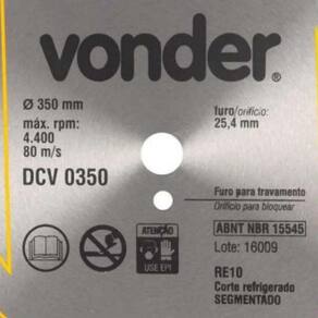 Este modelo conta com um perfil segmentado e corte refrigerado, o que proporciona não apenas maior eficiência na dissipação de calor, mas também aumento significativo na durabilidade do produto, mesmo sob condições de uso intensas. O furo para travamento do disco garante maior segurança operacional, especialmente em cortes prolongados. Seguindo as normas técnicas da ABNT NBR 15545, o disco VONDER reforça seu compromisso com a segurança e o desempenho .