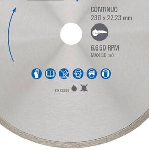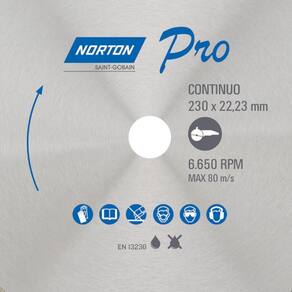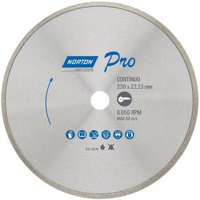 Produto: Disco diamantado liso 230 x 22,23 mm para porcelanato Marca: Norton Descrição: O Disco diamantado liso 230 x 22,23 mm para porcelanato da Norton é a escolha ideal para cortar pedras duras, cerâmicas, azulejos e, principalmente, porcelanatos. Projetado para operações de alto rendimento, ele oferece uma combinação imbatível de ampla cobertura e eficiência de corte. Escolha nosso Disco Diamantado Norton e experimente o corte excepcional que transforma projetos desafiadores em realizações gratificantes. Benefícios: • Cortes rápidos e precisos em superfícies duras; • Durabilidade, mesmo em ambientes exigentes; • Adaptabilidade a diversas condições de trabalho; • Otimização do desempenho para cortes precisosEspecificações: Diâmetro externo: 230 mm;Diâmetro do furo: 22,23 mm;Altura do segmento diamantado: 5 mm;Rotação máxima: 6650 RPM;Tipo: De corte;Superfícies aptas: Porcelanato. Marca: Não Informado