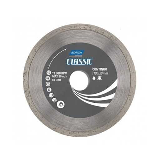Disco Diam. Norton Diamante Classic 110x20mm Disco diamantado Classic Continuo. Os discos Norton oferecem excelente performance tanto em trabalhos contínuos nas indústrias siderúrgicas, fundições, automotivas, estaleiros, etc., bem como em trabalhos intermitentes em montagens industriais, serralherias e construção civil, entre outros.