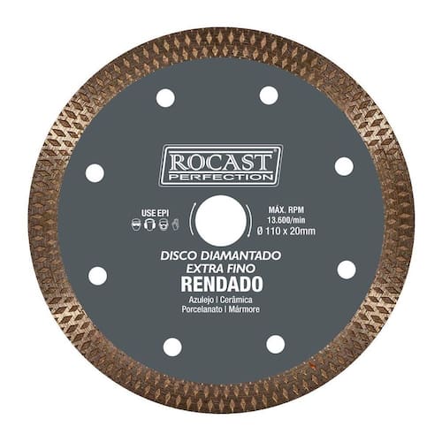 O Disco Diamantado Rendado Para Porcelanato - Extrafino 110 x 20mm 34,0017 - Rocast, é uma ferramenta de corte altamente eficiente em esmerilhadeiras, serras circulares e outras máquinas de corte para materiais duros. Ele é composto por um núcleo de aço ou outro metal resistente, no qual são fixados segmentos de corte impregnados com partículas de diamante industrial. Os discos diamantados são projetados para cortar materiais extremamente duros e abrasivos, como porcelanato, azulejo, granito e mármore. Descrição do Produto: Aplicação: Porcelanato, Azulejo, Granito e Mármore. Corte: Refrigerado com Água. Apresentação: Blister Autosserviço. Diâmetro mm : 110 x 20mm. Modelo: Liso Extrafino. Uso: Porcelanato. Referência: LISO EXTRAFINO. Cód. De Fábrica: 34,0017. Marca: Rocast. Marca: Não Informado Ean: 7908745602196