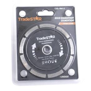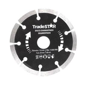 Disco Diamantado Segmentado Para Concreto Tijolo Lajota 110X20 Disco diamantado segmentado 110x20 mm - ideal para cortes precisos em materiais como concreto, cerâmica, pedras naturais e artificiais. Seus segmentos proporcionam um corte rápido e eficiente, sem danificar o material. Compatível com diversas máquinas de corte, possui uma fixação segura e fácil de ser instalado. Garanta agora um trabalho de qualidade com o disco diamantado segmentado 110x20 mm.Detalhes importantesConfira algumas vantagens de comprar com a jjc ferramentas:- boletos são aprovados em até 48 horas úteis após o pagamento Marca: Tradestar