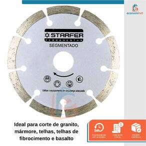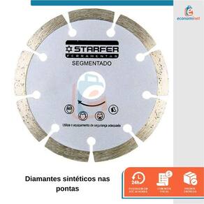 CARACTERÍSTICAS TÉCNICAS: Material: Aço Carbono com lâmina diamantada Medidas: 180mm altura x 25,4mm - 7 diâmetro x 7,5mm espessura Máxima rotação: 8.500rpm - 80m/s Marca: Starfer Ref.: 1264001 Marca: Não Informado