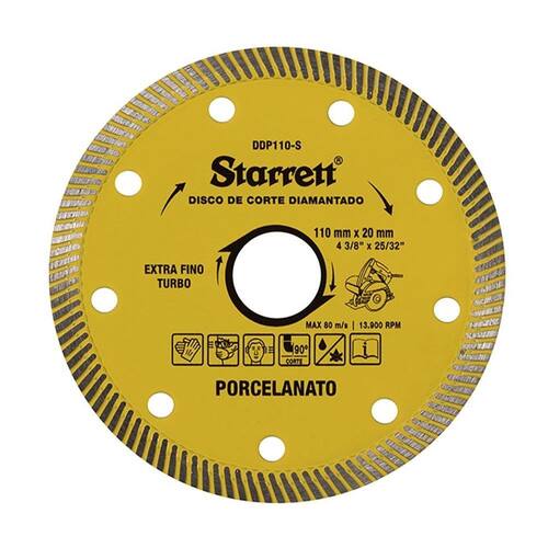 Características do Produto: Marca: Starrett Diâmetro: 110mm Diâmetro do Furo: 20mm Modelo: Turbo Para: Porcelanatos Ean: 7891265027658