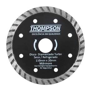 Disco Diamantado Turbo 110 X 20mm - Kit 3 Pecas - Thompson INFORMAÇÕES DO PRODUTOO Disco de Corte Diamantado é um disco feito para o corte de cerâmicas e porcelanato. Pode ser utilizado a seco ou a úmido em processos de corte. DADOS TÉCNICOS Os segmentos da banda ajudam a dissipar o calor gerado durante o corte, aumentando a vida útil do disco. Recomendado para uso em porcelanatos e cerâmicas. Dimensões (mm): 110x20 Tempo de garantia: 3 meses. ** Preço do produto em PC **