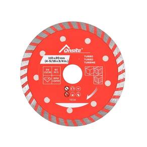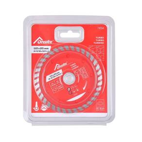 O Disco Diamantado Turbo 110mm x 5/16'' x 22.23mm / 20mm 745541 - Onsite, com anel de redução é ideal para cortes rápidos e precisos em materiais duros, como porcelanato, cerâmica, mármore e granito. Ele oferece diversas vantagens para quem busca eficiência e qualidade no corte. Vantagens do Disco Diamantado Turbo Onsite 110mm x 5/16'' x 22.23mm / 20mm : Corte Rápido e Preciso: O design turbo com ranhuras contínuas melhora a velocidade e precisão do corte, reduzindo lascamentos. Menos Vibração e Acabamento Suave: Com furações no corpo e a estrutura contínua, proporciona cortes mais estáveis e limpos, minimizando rebarbas e necessidade de retrabalho. Alta Durabilidade: Com faixa de diamante de 0.8mm, contém partículas diamantadas de alta qualidade, garantindo maior resistência ao desgaste e longa vida útil. Versatilidade: Indicado para cortes em porcelanato, cerâmica, granito, mármore, azulejos e pedras ornamentais e pode ser tanto em esmerilhadeiras como em serras mármore, devido a seu anel de redução. Menos Poeira e Superaquecimento: furos no corpo do disco e diamante com ranhuras, favorece a dissipação de calor, reduzindo poeira e evitando o superaquecimento do material e da ferramenta. Anel de Redução Incluso: Ajustável para eixos de 22,23mm ou 20mm, permitindo compatibilidade com diversas máquinas, como serras mármore e esmerilhadeiras Makita, Bosch, DeWalt, etc. . Uso a Seco ou Úmido : Pode ser utilizado com ou sem resfriamento a água, garantindo mais flexibilidade no trabalho. RPM: 13.200 rotações por minuto Se você busca um disco de alta precisão para cortes limpos em porcelanato, cerâmica e pedras, o Disco Diamantado Turbo Onsite é a escolha ideal Código: 745541. Marca: Onsite. Tamanho: 110mm x 5/16 x 22,23mm / 20mm. Ean: 1000011015429.