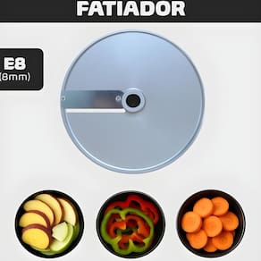 Características Técnicas: Compatível com os processadores: PA-7 e PA-7 PRO Corte: rápido e uniforme de frutas, verduras e legumes Material: Alumínio altamente resistente com acabamento prata metálico (fácil de limpar e durável) Espessura de Corte: 8 mm ideal para fatias padrão com ótimo rendimento Função do disco: fatiar alimentos Material da lamina: Aço inox