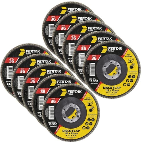 Diâmetro: 115mm Grão: 36 Material: Lixa abrasiva de alta performance. Compatibilidade: Uso com esmerilhadeiras e lixadeiras angulares. Aplicações: Lixamento, desbaste e acabamento em metais, madeiras e superfícies diversas.