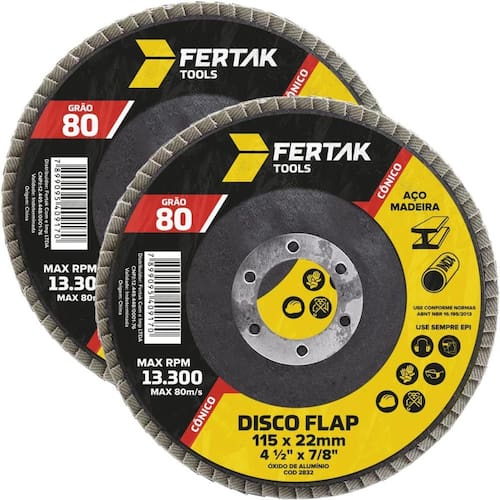 Diâmetro: 115mm Grão: 80 Material: Lixa abrasiva de alta performance. Compatibilidade: Uso com esmerilhadeiras e lixadeiras angulares. Aplicações: Lixamento, desbaste e acabamento em metais, madeiras e superfícies diversas.