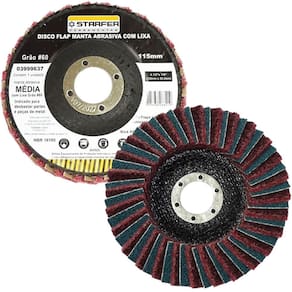 Ideal para garantir um desbaste eficaz e um acabamento refinado em superfícies metálicas, o Disco Flap Misto de Manta Abrasiva e Lixa 4.1/2 Média Vermelha da Starfer é uma excelente escolha para lixar, desbastar e finalizar peças de aço, alumínio e outros metais.