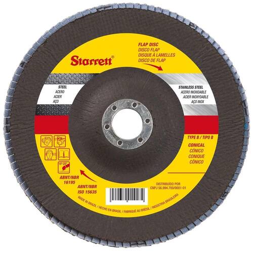 Aplicável em operações de desbaste, remoção de solda e acabamento em aço inox, alumínio, metais ferrosos e não ferrosos com esmerilhadeiras angulares. - Preferencialmente utilizado em superfícies curvas e cantos devido ao seu formato cônico, proporcionando ótimo acabamento. - Ângulo de trabalho de 15 a 25. CARACTÉRISTICAS: -Discos com suporte em fibra de vidro e formato cônico. -grãos de zircônio proporcionam maior vida útil. -ótimo custo-benefício com excelente taxa de remoção de material. -desbaste e acabamento na mesma operação, reduzindo o tempo e custo no processo. -menor ruído e vibração. -grão 407 Ean: 7891265014092