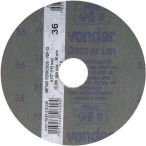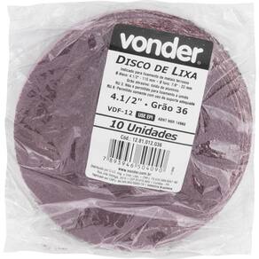 Disco Lixa Fibra 115mm G36 Dvf12 10 Peças - Vonder Conteúdo da embalagem 1 Pacote com 10 discos de lixa Aplicações e dicas de uso Indicado para lixamento de metais ferrosos. Utilizado em máquinas angulares rotativas de acionamento elétrico ou pneumático. Aplicações em estruturas metálicas, indústria naval, fundições de metais ferrosos e indústria automobilística. Destaques e diferenciais Possui costado de fibra que proporciona maior vida útil DETALHES TÉCNICOS