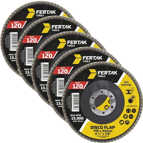 Diâmetro: 115mm Grão: 120 Material: Lixa abrasiva de alta performance. Compatibilidade: Uso com esmerilhadeiras e lixadeiras angulares. Aplicações: Lixamento, desbaste e acabamento em metais, madeiras e superfícies diversas.