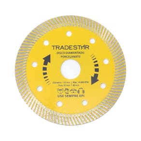 Disco diamantado porcelanato Desenvolvido para a perfeição no corte de porcelanato e materiais cerâmicos, nosso disco diamantado porcelanato 110x20mm é a escolha definitiva para profissionais que buscam resultados precisos e eficientes. Com uma combinação de qualidade superior e tecnologia de ponta, este disco é a ferramenta essencial para suas demandas de corte em projetos de construção e reforma. Características: indicado para cortar porcelanatos e cerâmicas. corte a seco ou refrigerado. Tamanho: 110 mm x 20 mm Construção de alta qualidade: fabricado com lâmina de base de metal resistente, revestido com diamantes industriais de alta qualidade, garantindo cortes precisos e durabilidade excepcional. Versatilidade excepcional: projetado especificamente para corte de porcelanato e cerâmica, proporcionando resultados uniformes e limpos em cada corte. Desempenho superior: a combinação de diamantes afiados e design de borda otimizado oferece cortes rápidos e eficientes, minimizando o risco de lascas ou quebras. Furo de 20mm: compatível com uma variedade de máquinas e ferramentas, garantindo fácil adaptação para diferentes equipamentos. Ideal para profissionais: atende às demandas de empreiteiros, azulejistas e profissionais da construção, proporcionando confiança e resultados de alta qualidade. Eleve o padrão do seu trabalho com o nosso disco diamantado porcelanato 110x20mm. Conquiste cortes perfeitos e precisos, economizando tempo e recursos. Não comprometa a qualidade do seu projeto - escolha a excelência do nosso disco diamantado para cada desafio em materiais cerâmicos e porcelanato. Quantidade por embalagem - 1 unidade 90 dias após a compra. Imagens meramente ilustrativas As tonalidades da cor do produto podem sofrer alterações de acordo com a tela que estiver usando para visualização. Vantagens de comprar com a jjc ferramentas: Experiência e confiança: somos especialistas em ferramentas e acessórios, garantindo produtos de qualidade e desempenho superior. Variedade e qualidade: oferecemos uma seleção abrangente de ferramentas, sempre priorizando a durabilidade e eficiência. Atendimento personalizado: nossa equipe está pronta para ajudá-lo, oferecendo suporte técnico e orientações precisas. Satisfação garantida: se por algum motivo não ficar satisfeito, oferecemos política de devolução sem complicações. Marca: Tradestar