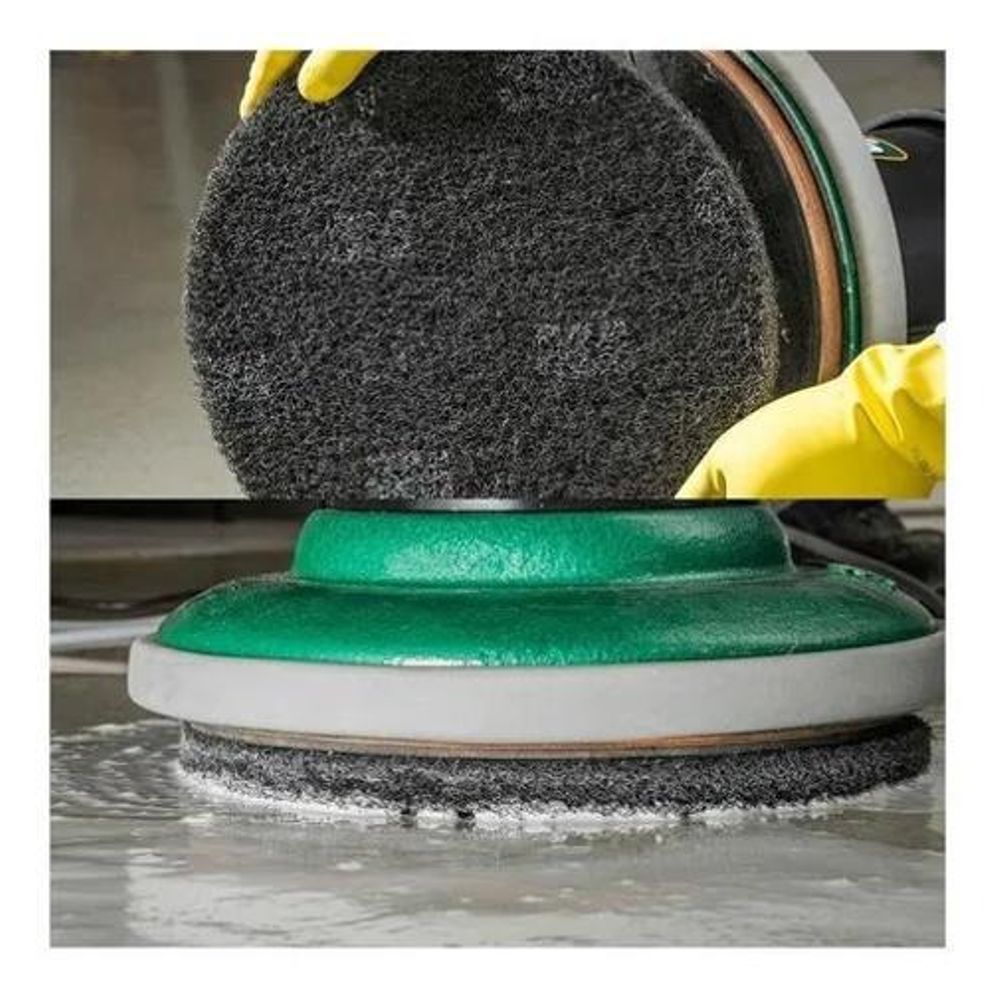 Disco Preto Removedor Scotch-Brite 350mm Remove acabamentos antigos, bases seladoras e contaminantes da superfície do piso Maior abertura entre as fibras, evitando o empastamento e a perda de produtividade Disco de menor agressividade ao piso entre todos os discos removedores Disco referência de mercado no procedimento de remoção total Equipamento compatível: enceradeiras ou limpadoras automáticas de baixa rotação 175 - 300 rpm O Disco Preto Removedor Scotch-Brite tm é um disco de limpeza pesada referência no mercado de limpeza profissional. É utilizado com solução de removedor de ceras, para remoção de acabamentos antigos, bases seladoras e contaminantes da superfície do piso. De grande durabilidade, mantém uma performance consistente durante toda sua vida útil. em enceradeiras ou limpadoras automáticas de baixa rotação 175 - 300 rpm . Modo de usar: remova toda a sujeira do piso com mop antes da remoção. Utilize o aviso de piso escorregadio. Aplique o Removedor de Ceras Scotch-Brite tm no local desejado com mop água, deixando o piso uniformemente umedecido. Deixe o produto químico agir de dois a cinco minutos. Utilize a enceradeira de baixa rotação em conjunto com o Disco Preto Removedor Scotch-Brite tm para Piso, para remover todas as camadas de acabamento do piso. Remova toda solução remanescente no piso camadas de acabamento dissolvidas, sujeiras e produto removedor de ceras com um mop ou aspirador de líquidos. Espere o piso secar antes de aplicar um acabamento novo. Marca: Não Informado