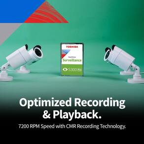 Toshiba Disco rígido interno S300 PRO 8TB Surveillance 8.9 cm – CMR SATA 6 Gb/s 7200 RPM 512MB Cache - HDWTA80UZSVAR - Projetado para vigilância 24 horas por dia, 7 dias por semana e sistemas de segurança de gravação de vídeo - Escalável até 64 câmeras de vídeo HD. Alto desempenho com velocidade de 7200 RPM e tamanho de cache grande. - Alta confiabilidade com classificação de carga de trabalho de até 300 TB/ano e MTBF de até 1,2 milhões de horas - Sensores de RV integrados para ajudar a mitigar vibrações rotacionais em ambientes com vários compartimentos - Inclui uma garantia limitada de 5 anos