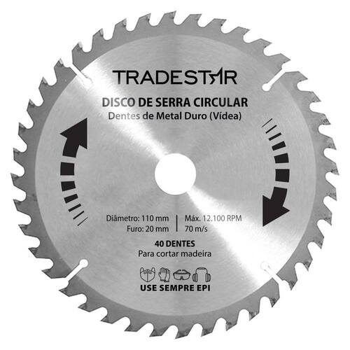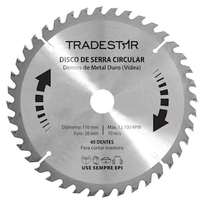 O disco serra circular madeira 40 dentes 110x20mm- sua escolha de excelência para cortes precisos e eficazes em projetos de carpintaria e marcenaria. Projetado para profissionais que valorizam qualidade e desempenho.Principais características:- tamanho: 110x20mm- corte rápido e eficiente: com 40 dentes afiados, este disco proporciona cortes rápidos e suaves em madeira, otimizando seu tempo e garantindo resultados excepcionais.- versatilidade de materiais: adequado para diversos tipos de madeira, desde as mais macias até as mais duras, adaptando-se a diferentes projetos e necessidades.- durabilidade superior: fabricado com materiais de alta qualidade, este disco oferece resistência ao desgaste, prolongando sua vida útil mesmo em uso intensivo.- precisão e segurança: o design dos dentes minimiza lascas e proporciona cortes limpos e seguros, permitindo resultados consistentes em cada corte.- instalação simplificada: o furo de 20mm garante compatibilidade com várias serras circulares, facilitando a troca e instalação do disco.O nosso disco de serra circular madeira 40 dentes 110x20mm. Se você busca resultados excepcionais, confie na eficiência e precisão deste disco para cada tarefa. Seja você um profissional experiente ou um entusiasta da marcenaria, este disco será sua ferramenta confiável para cortes perfeitos e confiantes em madeira.Serra circular para madeiraTamanho: 110 x 20 mm Dentes: 40Vídea: simQuantidade por embalagem - 1 unidadeGarantia 90 dias após a compra.Imagens meramente ilustrativasAs tonalidades da cor do produto podem sofrer alterações de acordo com a tela que estiver usando para visualização. Vantagens de comprar com a jjc ferramentas:Experiência e confiança: somos especialistas em ferramentas e acessórios, garantindo produtos de qualidade e desempenho superior.Variedade e qualidade: oferecemos uma seleção abrangente de ferramentas, sempre priorizando a durabilidade e eficiência.Atendimento personalizado: nossa equipe está pronta para ajudá-lo, oferecendo suporte técnico e orientações precisas.Satisfação garantida: se por algum motivo não ficar satisfeito, oferecemos política de devolução sem complicações. Marca: Tradestar