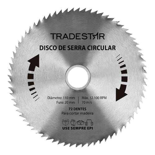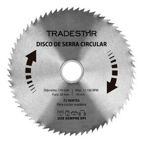 O disco serra circular madeira 72 dentes 110x20mm sua escolha de excelência para cortes precisos e eficazes em projetos de carpintaria e marcenaria. Projetado para profissionais que valorizam qualidade e desempenho.Principais características:- tamanho: 110x20mm- corte rápido e eficiente: com 72 dentes afiados, este disco proporciona cortes rápidos e suaves em madeira, otimizando seu tempo e garantindo resultados excepcionais.- versatilidade de materiais: adequado para diversos tipos de madeira, desde as mais macias até as mais duras, adaptando-se a diferentes projetos e necessidades.- durabilidade superior: fabricado com materiais de alta qualidade, este disco oferece resistência ao desgaste, prolongando sua vida útil mesmo em uso intensivo.- precisão e segurança: o design dos dentes minimiza lascas e proporciona cortes limpos e seguros, permitindo resultados consistentes em cada corte.- instalação simplificada: o furo de 20mm garante compatibilidade com várias serras circulares, facilitando a troca e instalação do disco.O nosso disco de serra circular madeira 72 dentes 110x20mm. Se você busca resultados excepcionais, confie na eficiência e precisão deste disco para cada tarefa. Seja você um profissional experiente ou um entusiasta da marcenaria, este disco será sua ferramenta confiável para cortes perfeitos e confiantes em madeira.Serra circular para madeiraTamanho: 110 x 20 mm Dentes: 72Vídea: simQuantidade por embalagem - 1 unidadeGarantia 90 dias após a compra.Imagens meramente ilustrativasAs tonalidades da cor do produto podem sofrer alterações de acordo com a tela que estiver usando para visualização. Vantagens de comprar com a jjc ferramentas:Experiência e confiança: somos especialistas em ferramentas e acessórios, garantindo produtos de qualidade e desempenho superior.Variedade e qualidade: oferecemos uma seleção abrangente de ferramentas, sempre priorizando a durabilidade e eficiência.Atendimento personalizado: nossa equipe está pronta para ajudá-lo, oferecendo suporte técnico e orientações precisas.Satisfação garantida: se por algum motivo não ficar satisfeito, oferecemos política de devolução sem complicações. Marca: Tradestar