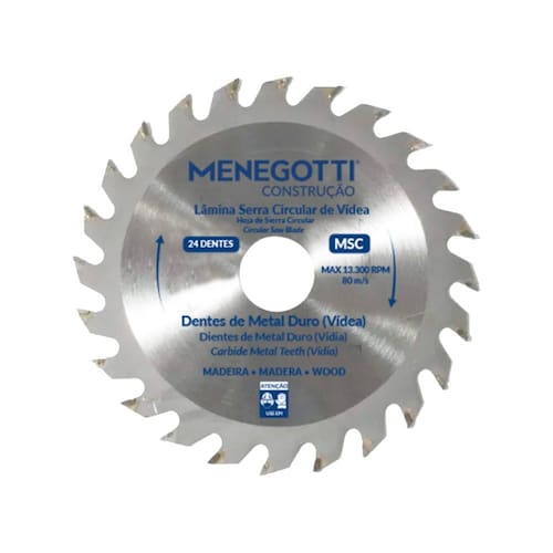 Características Marca: Menegotti Modelo: MSC 110mm 24D Diâmetro do disco: 4.3/8 Pol - 110mm Rotações por minuto: 13.000rpm Número de dentes: 24D
