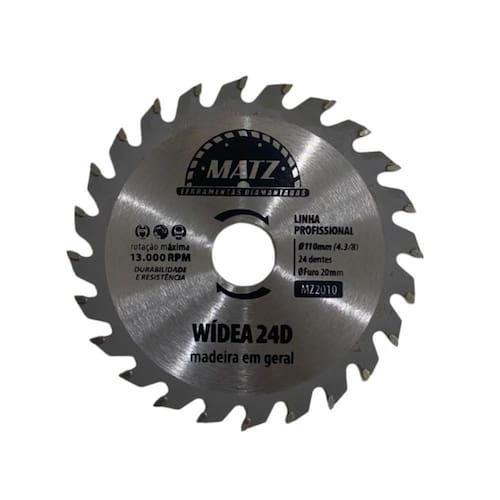 Disco Serra Wídea Para Madeira 24 Dentes 110Mm X 20Mm Matz