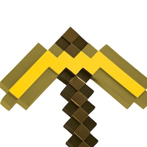 - Machados de brinquedo de plástico seguros para vestir – esta picareta dourada Minecraft é feita de materiais seguros que podem ser utilizados em casa ou com amigos