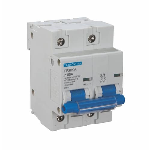 Os disjuntores são dispositivos eletromecânicos de segurança que desarmam a rede elétrica de determinado circuito em caso de sobrecarga e curto-circuito. Além de manter a integridade da isolação, garantindo a vida útil dos condutores, o disjuntor proporciona um funcionamento adequado da instalação e dos equipamentos a ela conectados. Por isso, são instalados no quadro de distribuição em número compatível com os circuitos e dimensionados conforme a potência de cada equipamento, número de lâmpadas e tomadas de cada circuito. Os disjuntores da Tramontina possuem montagem e desmontagem individual, sem necessidade de desconectar todo o barramento; conexão dos terminais para cabo e barramento em ambos os lados da peça, otimizando o tempo de instalação do dispositivo no quadro; e indicador de posição liga/desliga, que informa o real status de funcionamento do disjuntor caso a manopla esteja travada. Informações Técnicas: Marca: Tramontina Linha: TR6KA Tipo: Bipolar Amperagem: 80A IP20: Sim Curva: C Altura: 8cm Largura: 7cm Diâmetro: 4 cm : Contra defeito de fabricação. Orientações Gerais: A instalação e segurança: É importante que o produto seja instalado por profissional habilitado. Antes de instalar, desligue a energia elétrica. Marca: Não Informado