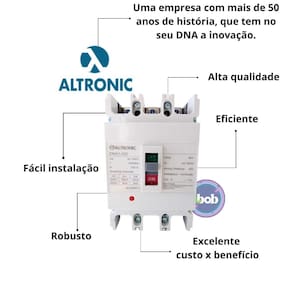 A ibob motores e automação tem a missão de garantir a satisfação total do seu cliente, tanto nos produtos quanto no atendimento, estabelecendo assim uma relação de confiança Disjuntor caixa moldada tripolar 200a altronic Quer proteger seus equipamentos elétricos com qualidade e segurança O disjuntor caixa moldada 200a tripolar da altronic é a solução perfeita para proteger seus equipamentos elétricos. Com a marca altronic, você pode confiar qualidade e durabilidade deste produto. Com uma tensão nominal de isolamento máxima de 800vca, este disjuntor é ideal para aplicações industriais e comerciais. Com três pólos e uma corrente nominal de 200a, ele oferece proteção geral e confiável para suas instalações elétricas. Seu design em caixa moldada garante maior segurança e resistência. Com tecnologia de unidade de disparo em caixa moldada, este disjuntor é fácil de instalar e operar. Não perca a oportunidade de adquirir este produto de alta qualidade para proteger seus equipamentos elétricos. Características gerais: Modelo: 5dma1-200; Corrente nominal: 200a; Número de pólos: 3; Tensão de isolação nominal v : 800v; Tensão de operação nominal v : 400v; Capacidade máxima de interrupção de curto circuito ka : 35; Capacidade de interrupção em serviço ka : 22; Número de manobras com carga nominal: 1000; Número de manobras sem carga: 7000; Categoria: a Fabricante: altronic Descrição do fabricante: Disj. Cx. Mold. Trip. D ma1-200 - 200a - rdm1- 225l : Tenha tranquilidade de comprar com quem está disposto a te oferecer o melhor atendimento. Caso precise de ajuda após a compra, conte com o nosso time de especialistas para lhe auxiliar. Estamos sempre a disposição para tirar qualquer dúvida. Marca: Não Informado