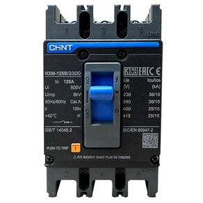 Disjuntor Caixa Moldada Tripolar Chint NXM-125S/3300 - 125A, 800V, 8kV, IEC/EN 60947-2