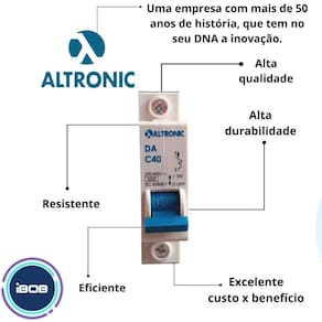 A ibob vendas online tem a missão de garantir a satisfação total do seu cliente, tanto nos produtos quanto no atendimento, estabelecendo assim uma relação de confiança disjuntor monopolar termomagnético 40a curva c nema altronic. Quer um disjuntor de alta qualidade para proteger seus fios e cabos contra curto-circuitos Então você precisa do nosso disjuntor monopolar termomagnético 40a curva c nema altronic. a linha de disjuntores altronic são equipamentos de alta tecnologia que protegem fios e cabos elétricos contra curto-circuitos e sobrecargas de energia, proporcionando aplicações seguras e econômicas em instalações elétricas, residenciais, comerciais e industriais. Características gerais: - marca: altronic; - peso: 1.050kg; - altura: 6.500cm; - largura: 2.000cm; - profundidade: 8.000cm; - corrente nominal: 40a; - tensão nominal: 230/400v; - frequência: 50/60hz; - temperatura ambiente: - 20c, + 50c; - curva de disparo: c; - tensão de isolação ui: 500v; - grau de proteção: ip 20; - fixação: encaixe perfil din 35mm. : Tenha tranquilidade de comprar com quem está disposto a te oferecer o melhor atendimento. Caso precise de ajuda após a compra, conte com o nosso time de especialistas para lhe auxiliar. Estamos sempre à disposição para tirar qualquer dúvida. Marca: Não Informado Ean: 7894795011777