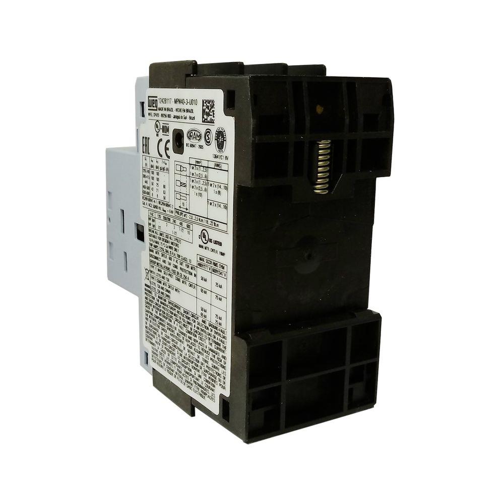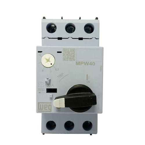 Disjuntormotor az mpw403u010 o disjuntoresmotores mpw são a solução compacta para partida e proteção de motores elétricos até 100 a. possuem alta capacidade de interrupção, permitindo sua utilização mesmo em instalações com elevado nível de corrente de curtocircuito. asseguram total proteção ao circuito elétrico e ao motor através de seus disparadores térmico (ajustável para proteção contra sobrecargas e dotado de mecanismo diferencial com sensibilidade a falta de fase) e magnético (calibrado para proteção contra curtoscircuitos). referência mpw40 corrente nominal máxima inmax (ie) 40 a faixa de ajuste da corrente 6,310 a número de polos 3 curtocircuito instantâneo 13 x iemax tensão de trabalho ue 690 v frequência de trabalho 50/60 hz tensão de isolação ui 690 v tensão de impulso nominal suportável uimp 6 kv categoria de utilização iec 60 9472 (disjuntormotor) a categoria de utilização iec 60 94741 (partida de motores) ac3 teste de trip sim proteção de sobrecarga sim sensibilidade à falta de fase sim indicação de trip sim classe de disparo 10 máxima frequência de manobra (man./h) 15 grau de proteção ip20