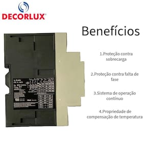 Disjuntor Motor Tripolar 80A Ajuste 56.0-80.0A Decorlux Disjuntor Motor é um dispositivo para proteção de motores contra curto-circuito. Sobrecarga e falta de fase associado ao relé térmico acoplado. Interrompe correntes em condições anormais. Utilizados para a proteção e o comando de motores, em conjunto com um Contator em condições normais e proteção por interrupção de correntes em condições anormais curto-circuito e sobrecarga . Permitem o arranque de motores com tensão plena, proteção contra sobrecargas e curtos-circuitos, em regime AC3. O relé térmico acoplado protege contra a falta de fase e sobrecargas. O acionamento manual do disjuntor motor é feito pelos botões frontais, e a corrente térmica é regulada no botão de ajuste. Especificações Técnicas: Marca: Decorlux Modelo: DM8080 Tensão: Até 690Vac Corrente: 80A Corrente de Ajuste: 56.0-80.0A Tensão nominal de isolação Ui : 690V Freqência nominal: 50/60Hz Grade de poluição: Grade III Acionamento: 2-botões Temperatura ambiente: -540ºC, , média de temperatura em 24h não excedendo +35C. Altitude de instalação:
