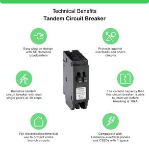 - Disjuntor tandem Homeline com polo único duplo a 20 amperes