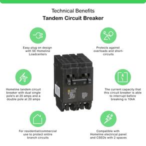 - Disjuntor em tandem homeline com polo único duplo de 20 amperes e um polo duplo a 20 amperes