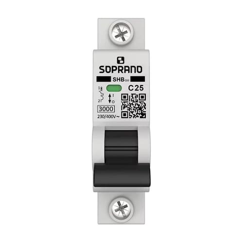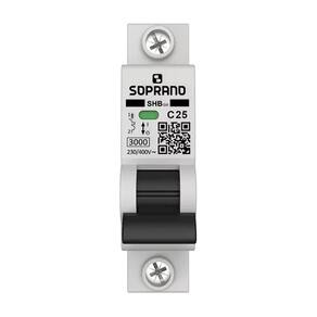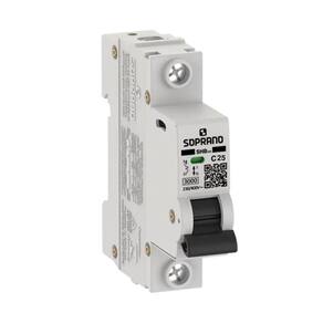 Características Principais: Marca: Soprano Modelo: 3kA Composição: Termoplástico e elementos metálicos Número de polos: 1 Corrente Nominal (In): 25A Classe de Proteção: classe 1 Tensão de Operação Nominal (Ue): 230/400Vca Curva de disparo termomagnética: tipo C - (5 a 10) x In EAN: 7891154190012