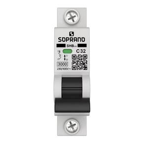 Características Principais: Marca: Soprano Modelo: 3kA Composição: Termoplástico e elementos metálicos Número de polos: 1 Corrente Nominal (In): 32A Classe de Proteção: classe 1 Tensão de Operação Nominal (Ue): 230/400Vca Curva de disparo termomagnética: tipo C - (5 a 10) x In EAN: 7891154189887