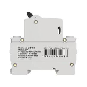 Características Adicionais: Proteção contra sobrecarga e curto-circuito com capacidade de interrupção de 3kA Conformidade com a norma NBR NM 60898 Certificação INMETRO para correntes de até 63A Indicado para instalações elétricas de baixa tensão em ambientes residenciais, comerciais e industriais Adequado para cargas indutivas e mistas Aplicação em corrente alternada (AC)