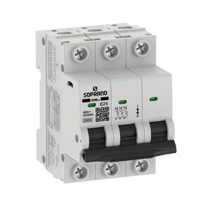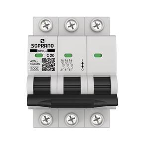 Características Principais: Marca: Soprano Modelo: 3kA Composição: Termoplástico e elementos metálicos Número de polos: 3 Corrente Nominal (In): 20A Classe de Proteção: classe 1 Tensão de Operação Nominal (Ue): 230/400Vca Curva de disparo termomagnética: tipo C - (5 a 10) x In EAN: 7891154189993