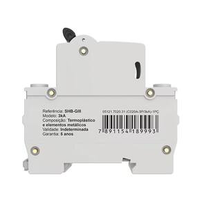 Características Adicionais: Proteção contra sobrecarga e curto-circuito com capacidade de interrupção de 3kA Conformidade com a norma NBR NM 60898 Certificação INMETRO para correntes de até 63A Indicado para instalações elétricas de baixa tensão em ambientes residenciais, comerciais e industriais Adequado para cargas indutivas e mistas Aplicação em corrente alternada (AC)
