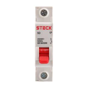 Características Adicionais: Minidisjuntor Termomagnético para Instalação em Trilho DIN 35 mm Curva de Disparo C (5 a 10 Vezes a Corrente Nominal) Capacidade de Interrupção de 3 kA Manopla Vermelha com Indicação ON/OFF Alimentação Elétrica por Ambos os Lados (Topo ou Base)