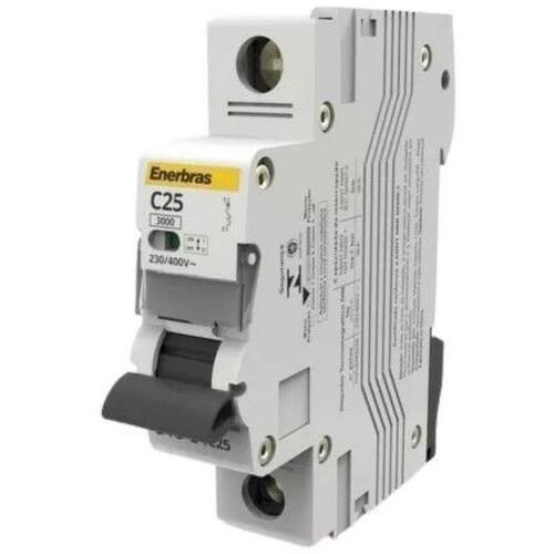 Disjuntor Termomagnético Monopolar Enerbras - 25 A Disjuntor termomagnético mais segurança para o seu maior patrimônio. Os disjuntores termomagnéticos da enerbras foram desenvolvidos para a proteção de instalações elétricas contra sobrecarga e curto-circuito. São equipados com sistemas de desarme através de disparadores térmicos para a proteção contra sobrecarga e magnéticos para a proteção contra curto-circuito, atuando com extrema agilidade e precisão. Possuem mecanismo de “disparo livre” garantindo o desarme do mecanismo mesmo que a alavanca de acionamento esteja travada na posição "ligado". Contatos especiais com camada de prata garantem a segurança contra soldagem em caso de curto-circuito. Possuem câmara de extinção de arco para absorver Energia do arco elétrico formado durante o curto-circuito, extinguindo-o imediatamente. Marca: Não Informado