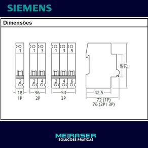 Disjuntor Trifásico Tripolar Mini Din Curva C 5Sj1 Siemens