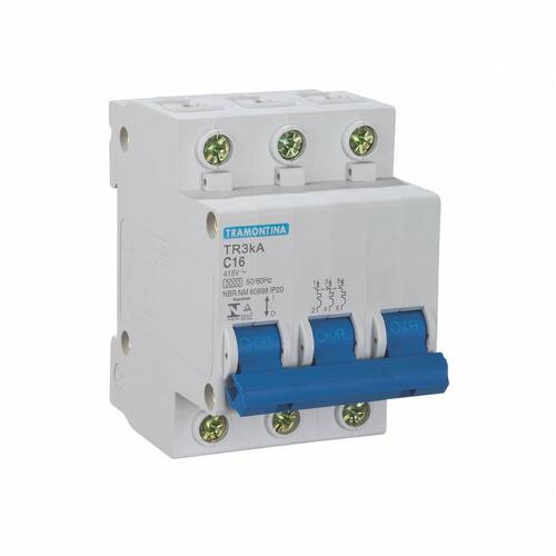 Os disjuntores são dispositivos eletromecânicos de segurança que desarmam a rede elétrica de determinado circuito em caso de sobrecarga e curto-circuito. Além de manter a integridade da isolação, garantindo a vida útil dos condutores, o disjuntor proporciona um funcionamento adequado da instalação e dos equipamentos a ela conectados. Por isso, são instalados no quadro de distribuição em número compatível com os circuitos e dimensionados conforme a potência de cada equipamento, número de lâmpadas e tomadas de cada circuito. Os disjuntores da Tramontina possuem montagem e desmontagem individual, sem necessidade de desconectar todo o barramento; conexão dos terminais para cabo e barramento em ambos os lados da peça, otimizando o tempo de instalação do dispositivo no quadro; e indicador de posição liga/desliga, que informa o real status de funcionamento do disjuntor caso a manopla esteja travada. Informações Técnicas: Marca: Tramontina Linha: TR3KA Tipo: Tripolar Amperagem: 10A IP20: Sim Curva: C Altura: 8cm Largura: 7cm Diâmetro: 8 cm : Contra defeito de fabricação. Orientações Gerais: A instalação e segurança: É importante que o produto seja instalado por profissional habilitado. Antes de instalar, desligue a energia elétrica. Marca: Não Informado