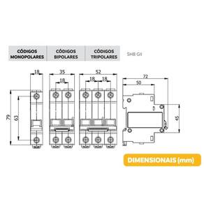 - Marca: Soprano; - Referência: 05121.0063.31; - Modelo: Disjuntor SHB3 GII; - Fabricado em termoplástico de engenharia; - Tensão nominal: 127/220V; - Frequência: 50/60 Hz; - Vida mecânica: 10.000 manobras | elétrica: 4.000 manobras; - Número de polos: 3; - Tensão máxima de isolamento de 415(Vca); - Temperatura ambiente de 30C; - Curva de disparo: C; - Capacidade de interrupção: 3 kA; - Padrão de instalação: DIN; - Grau de proteção IP20; - Peso do Produto: 0,09000kg; - Normas técnicas: Certificação Inmetro ABNT NBR 60898-1 (até 63A); - 2 anos de garantia.