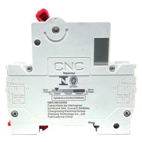 A capacidade de quebra do disjuntor é de 4500A, com tensão de impulso de 4000V. O teste de tensão dieletrica por 1 minuto é de 2000V. O disjuntor possui grau de poluição 2 e características de liberação termo-magnética B, C, D.