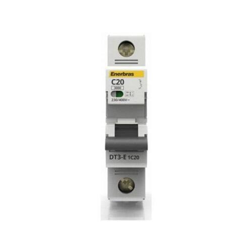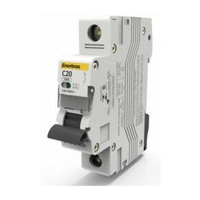 Disjuntor 20A - Os Disjuntores Termomagnéticos da Enerbras foram desenvolvidos para a proteção de instalações elétricas contra sobrecarga e curto-circuito. - São equipados com sistemas de desarme através de disparadores térmicos para a proteção contra sobrecarga e magnéticos para a proteção contra curto-circuito, atuando com extrema agilidade e precisão. - Possuem mecanismo de disparo livre garantindo o desarme do mecanismo mesmo que a alavanca de acionamento esteja travada na posição ligado. - Contatos especiais com camada de prata garantem a segurança contra soldagem em caso de curto-circuito. - Possuem câmara de extinção de arco para absorver energia do arco elétrico formado durante o curto-circuito, extinguindo-o imediatamente. ESPECIFICAÇÕES TÉCNICAS: Marca: Enerbras Tensões nominais de operação: 230/400 Vca Frequência: 50/ 60 Hz Curva de disparo magnético: C Vida elétrica: 6.000 manobras Vida mecânica: 20.000 Manobras Grau de proteção: IP20 Fenda dos parafusos: Mista: Fenda simples e Philips